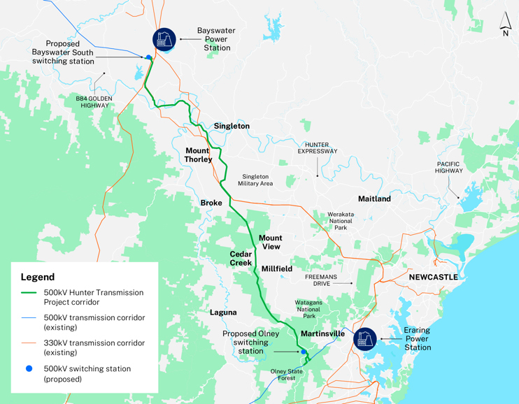 The project involves building a new overhead 500 kilovolt transmission line spanning around 110 kilometres between Bayswater in the Upper Hunter and Olney in the Lower Hunter. The HTP will also include building new switching stations in Bayswater and Olney, along with upgrades to the existing Bayswater and Eraring substations. This will add up to 5 gigawatts of extra electricity transfer capacity between Bayswater and Eraring.