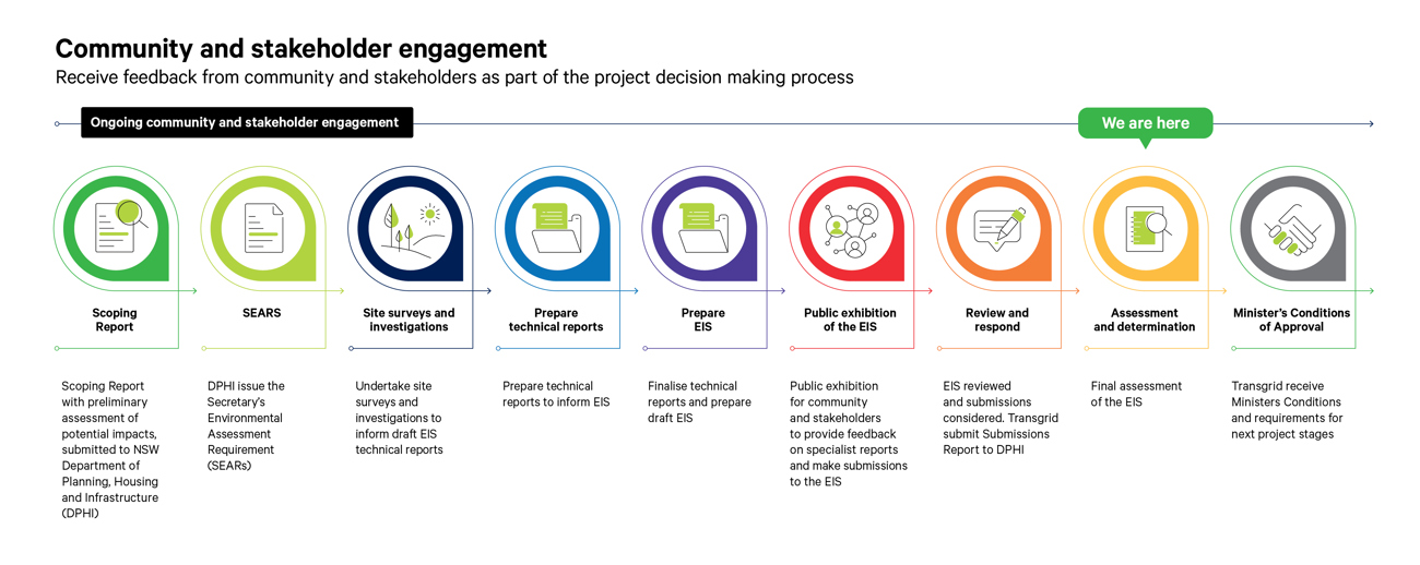 Transgrid has reviewed the submissions made during the EIS Public Exhibition period and developed a Response to Submissions Report, that collated, categorised and responded to submissions received from community members and groups, councils and government agencies.