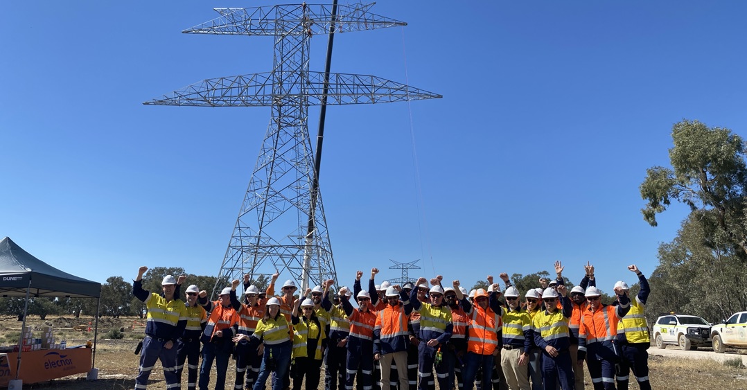 Transgrid and its construction partner Elecnor Australia have erected the final tower at Bundure in the Riverina region, marking a significant milestone for the nation-critical project which will increase renewable energy sharing between NSW, South Australia and Victoria.
